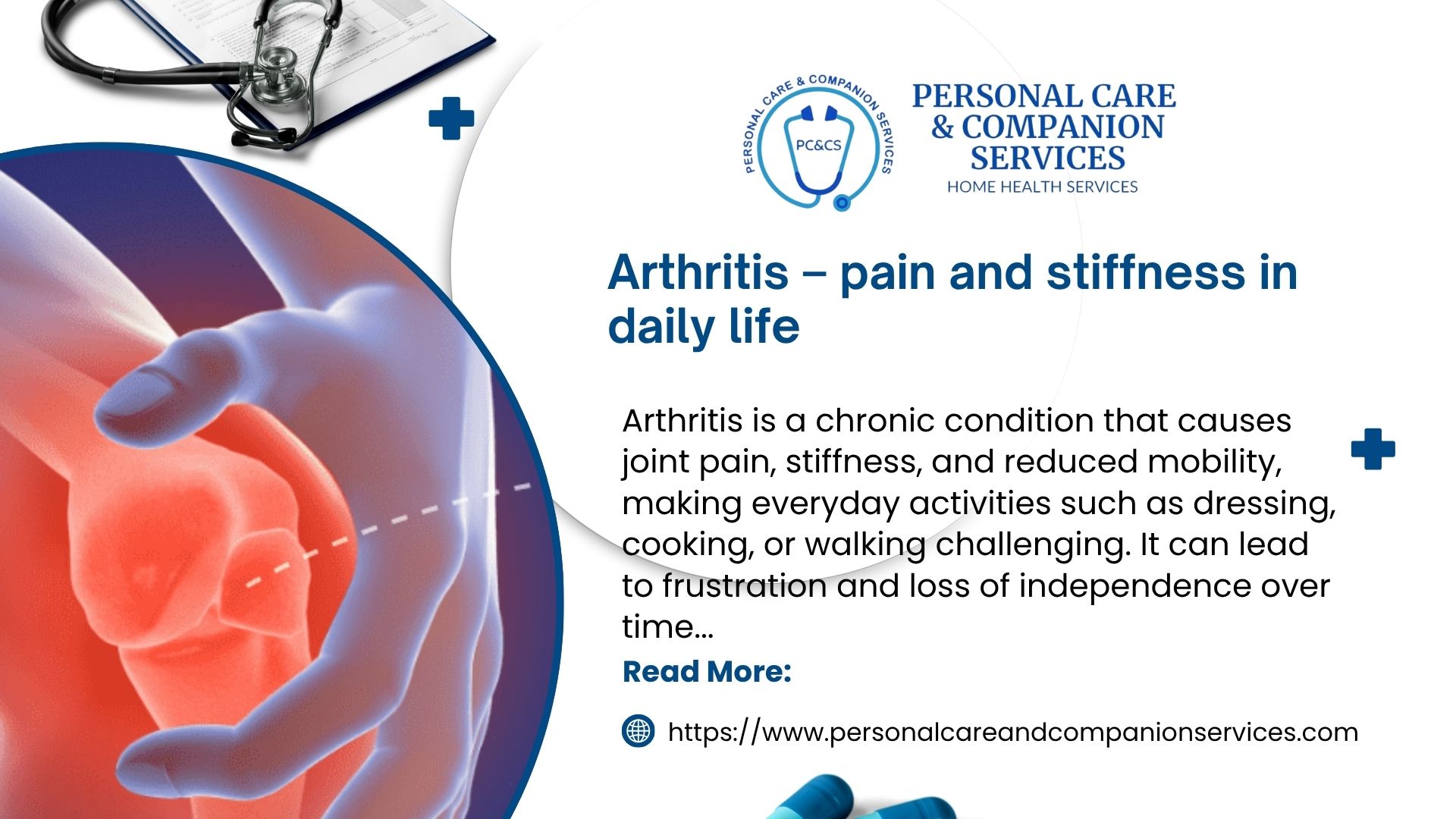 PCCS caregivers assist individuals with arthritis by providing support with mobility, encouraging gentle exercises, preparing easy-to-handle meals, and ensuring a safe home environment that prevents falls. By offering physical and emotional support, we help clients live more comfortably and maintain independence despite chronic pain.